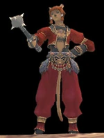 Naja grew up in the Gha Naboh Matriarchate on the Olzhirya continent, far to the south of her current home. She is always pictured with a large morning star which she waves about with bravado while giving her melodramatic and often blatantly condescending speeches.