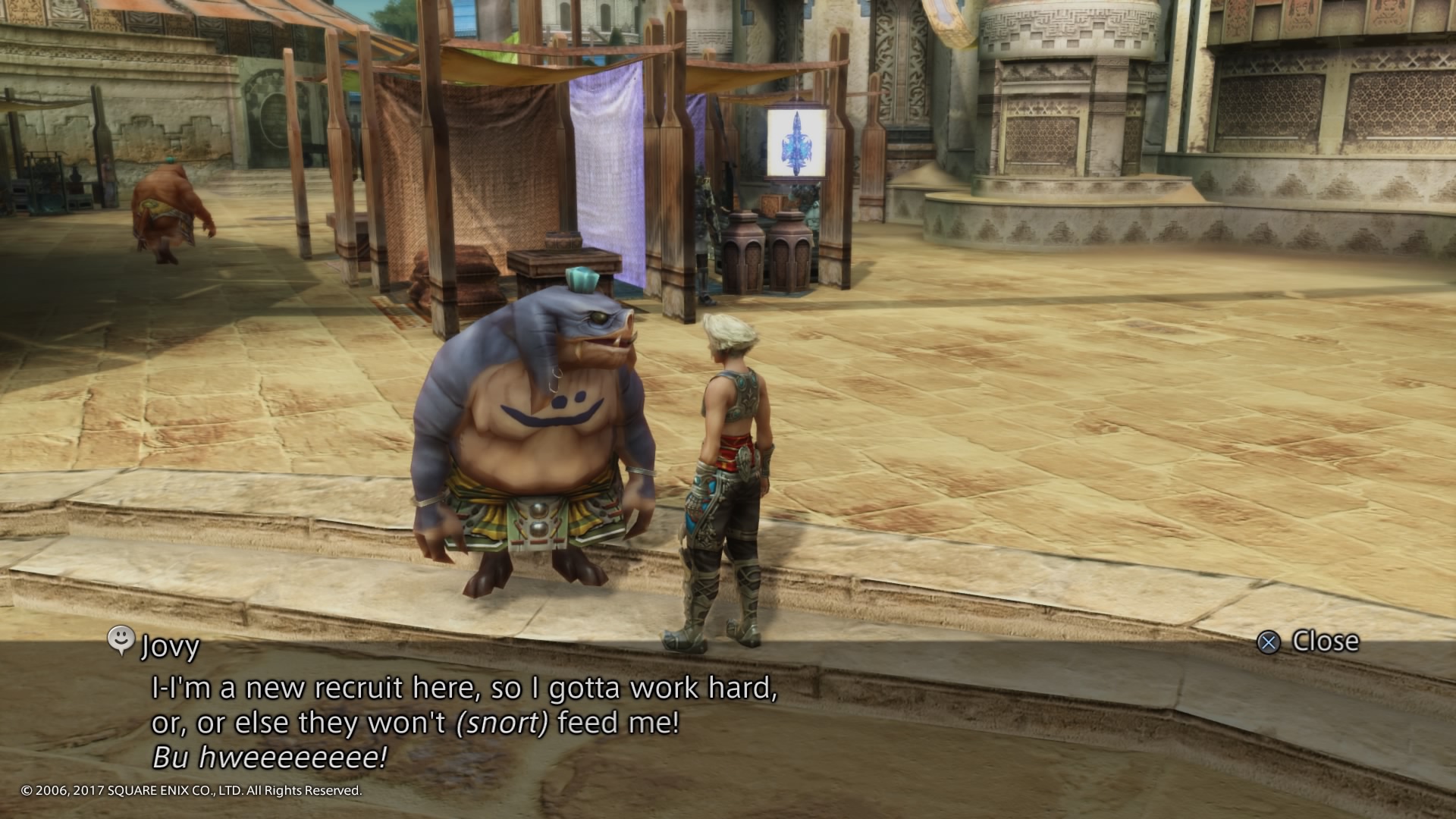 Jovy is a seeq living in Nalbina who knew Vaan's elder brother Reks. After completing all the hunts at Nalbina, the player gets a scene with Jovy and some items.