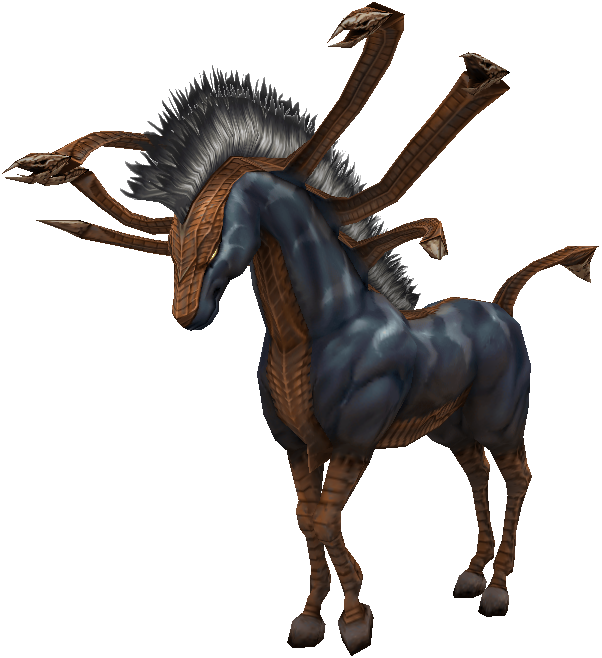 - Being a nightmarish equine creature, living in deep forests, possessing strange external organs that twist and wind like snakes. Though they have the bearing of herbivores at first glance, the positioning of their eyes and the set of their musculature are those of the flesh-eater, and indeed their teeth are sharp, being made for the tearing of tendon and hide. They are relentlessly aggressive, never abandoning a pursuit once the quarry has been sighted.