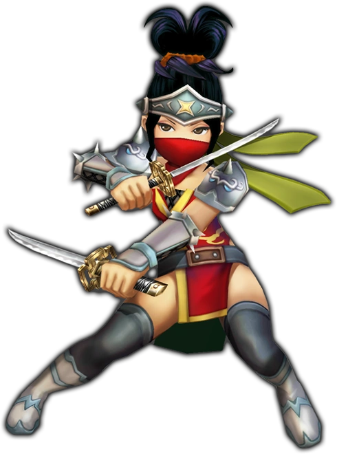 The Ninja is a high mobility damager and tank. It can initially equip dual ninjato, katanas and knuckles; after mastery dual daggers can be equipped.