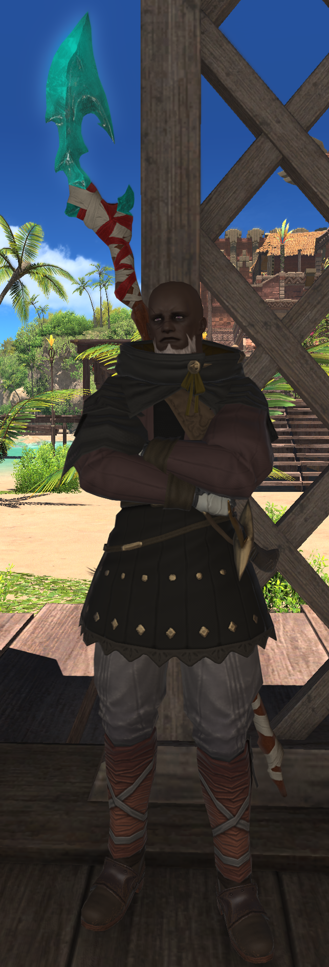 When the Heartsting was stolen from his village by the Passage of the Unbound, Nyipine and Loashkana, the village elder's daughter, traveled to Tuliyollal to recover the treasure. They were ambushed by the thieves and Nyipine had her foot severely injured by a mammet. Loashkana insisted that Nyipine remain in Tural to recover while she continued the mission alone. On recommendation of Br'uk Evu, Nyipine asked the Warrior of Light assist Loashkana, who had gone to Limsa Lominsa after hearing incidents of blindness during in the city-state.[1]