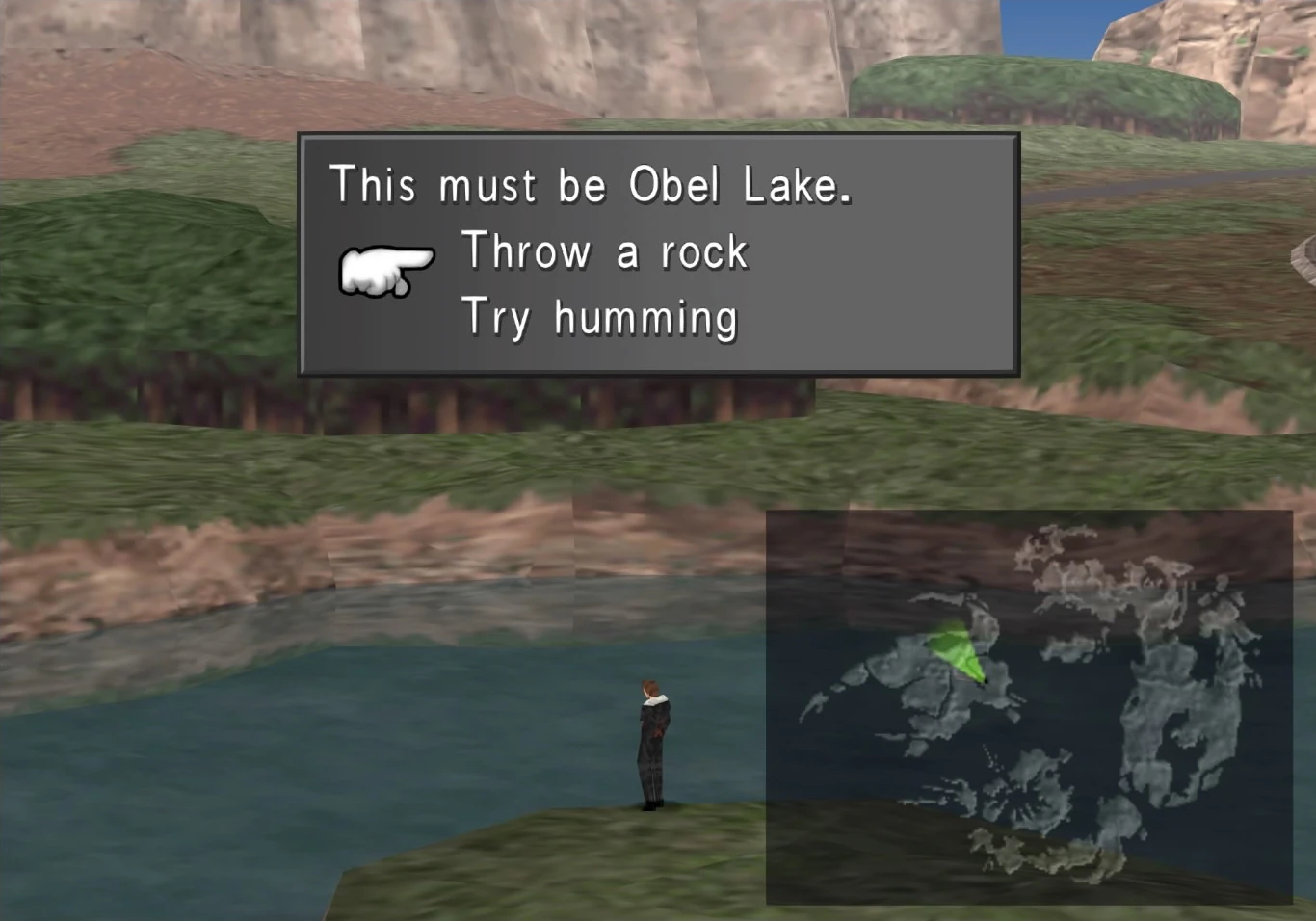 Next, Squall must leave for Obel Lake, and talk to the black shadow for the last time: