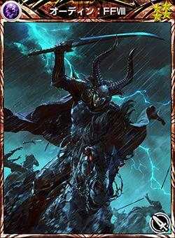 The Final Fantasy VIII incarnation of Odin appeared as a dark-elemental Warrior ability card for players to summon during the Final Fantasy VIII collaboration event. It allowed player characters to perform the Guardian Force: Dark (Gフォース:闇, G Fōsu: Yami?, lit. G Force: Dark) Warrior ability, which dealt dark damage to enemies within an area of effect several times. Additionally, the attack drew three dark elemental orbs, along with granting the Darkforce and Resist Light buffs on the user.