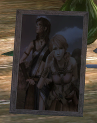 A photo of Fang and Vanille can be seen on a table in the house with Bhakti. The player can also find Vanille's and Fang's items here, such as Vanille's bracelets and necklaces. Among the many things to examine in Oerba is a model globe of Cocoon found in the school that has been defaced with "derogatory writing."