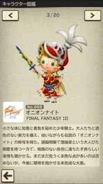 The Onion Knight's first appearance, he is the representative of Final Fantasy III among the warriors of Cosmos, opposing the Cloud of Darkness.