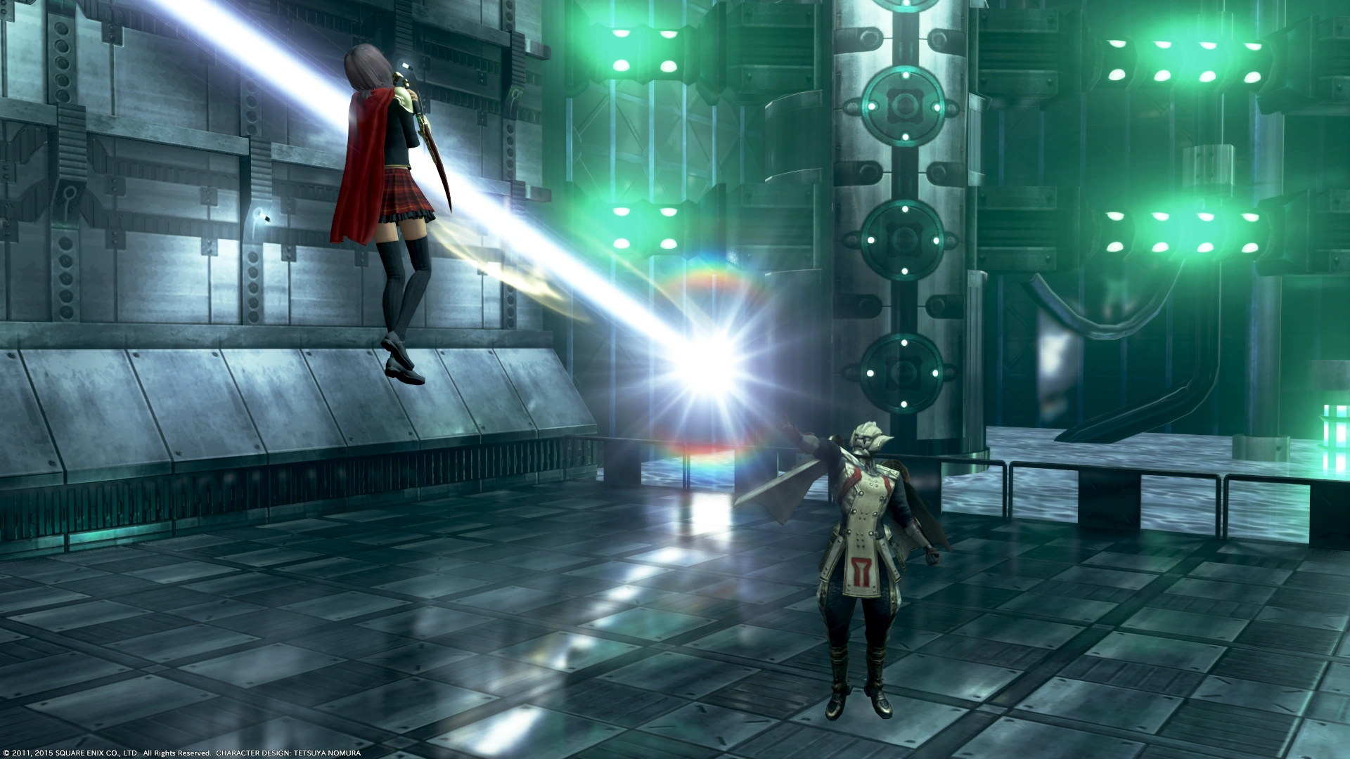 This area also has an alarm box that needs to be destroyed. It is located on the upper level, below the windows. The cadets must head down to the left, then quickly to the right. The cadets must clear away the researchers, destroy the box, and finish off the researchers once the alarm is down. There is another ID Card to access the computer. There is an SO to do this without the alarm being sound for a Phoenix Down. After accessing the computer, the cadets can leave the room and head down the southwest path to Warehouse RD-3, then northeast to the Parameter Stabilization Lab. There is an SO to reach the lab undetected for an Elixir.