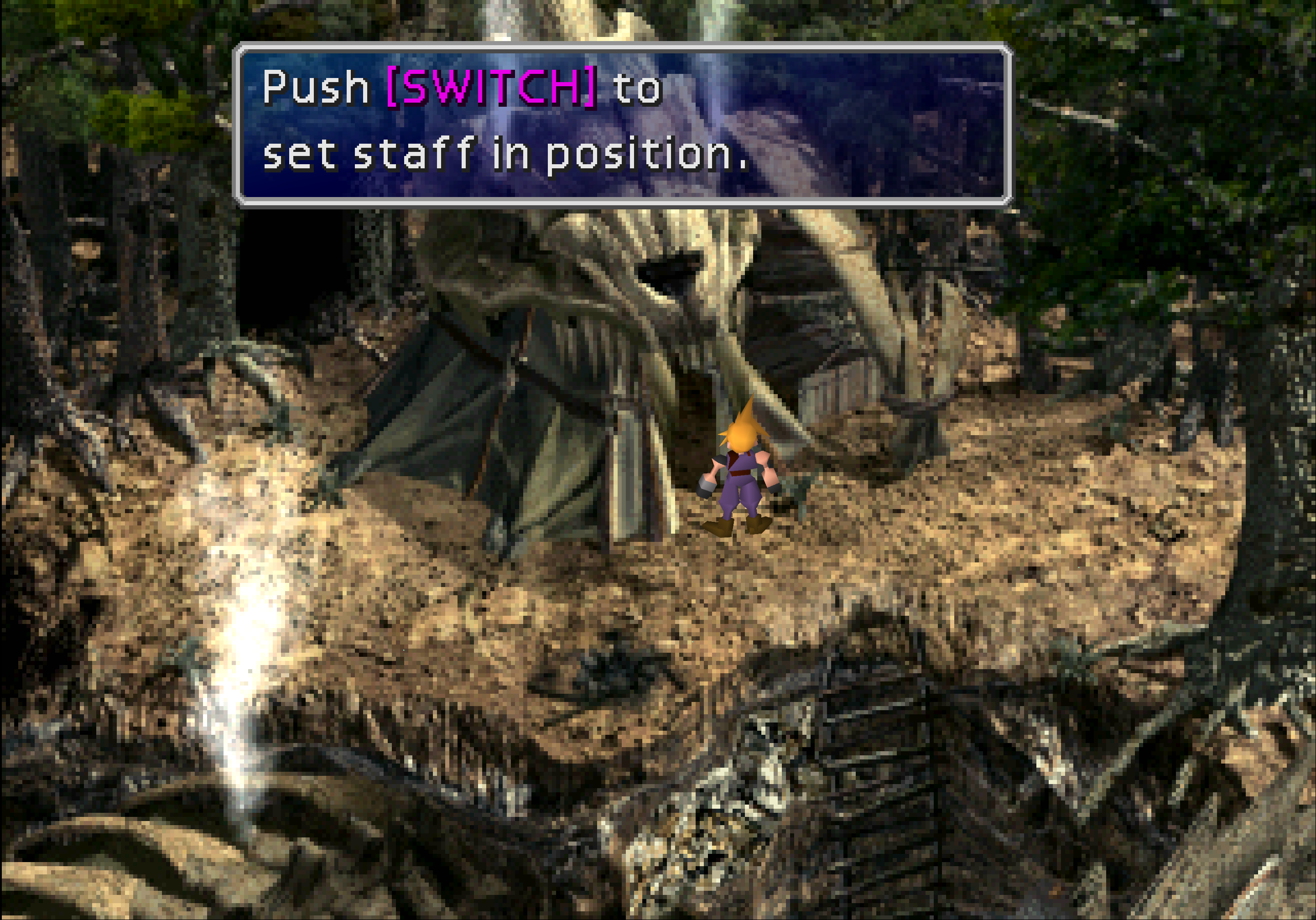 Sleeping Forest is a short area that was previously seen in Cloud's dream during the story sequence at the start of the chapter. The forest can only be passed through with the Lunar Harp.
