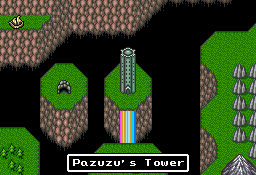 Pazuzu's Tower (パズズのとう, Pazuzu no Tō?) is a location from Final Fantasy Mystic Quest. It was built by Otto, but Pazuzu invaded it and used it as a stronghold. It is situated on a plateau located north of Windia, and Benjamin can only reach it once the Rainbow Bridge Machine has been repaired.