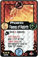 Phoenix is a chance card in Dragon Quest & Final Fantasy in Itadaki Street Portable, the card's ability: Randomly select a street and increase 10% stock value.