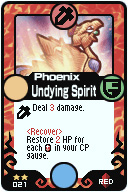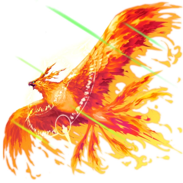 Phoenix is a fire-elemental Eidolon for Wrieg to equip. It teaches the Dragon Soul abilities, which allows Wrieg to revive the entire party. Phoenix's special attack is Flames of Rebirth, which deals high fire-elemental damage to all enemies and revives all KO'd party members.
