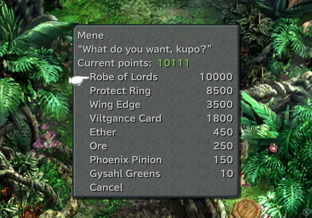 The only "shops" from where Phoenix Pinions can be procured are the Legendary Synthesis Shop in the final dungeon (the player will need 300 gil, a Phoenix Down, and a Gysahl Green to make one); Stiltzkin, who has it in his purchasable item packs in Cleyra, Fossil Roo, and Alexandria; and Mene's Chocobo Hot and Cold shop