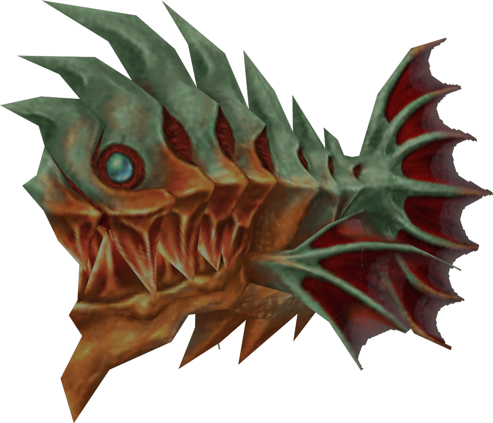 The Piranha appears a water-dwelling fiend encountered in the Submerged Ruins and Besaid. It can appear in units consisting of a single Piranha, a pair, or a trio, with the latter two being treated as single enemies. The Pirahnas will have greater HP and deal more damage the greater their numbers.