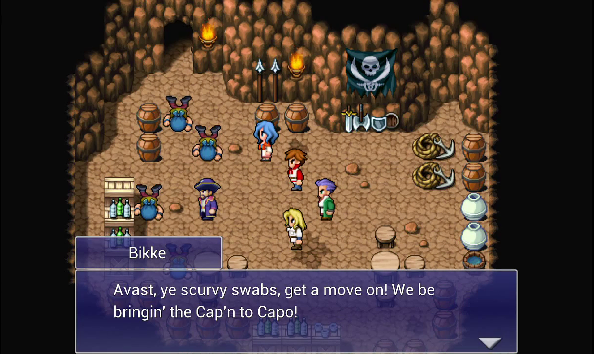 The Warriors of Light depart Capo to the Pirate Hideout to meet the pirates' boss, Bikke, and ask him to free Port Capo. Bikke calls himself King of Pirates and orders the pirates to capture the warriors, but they are unsuccessful.