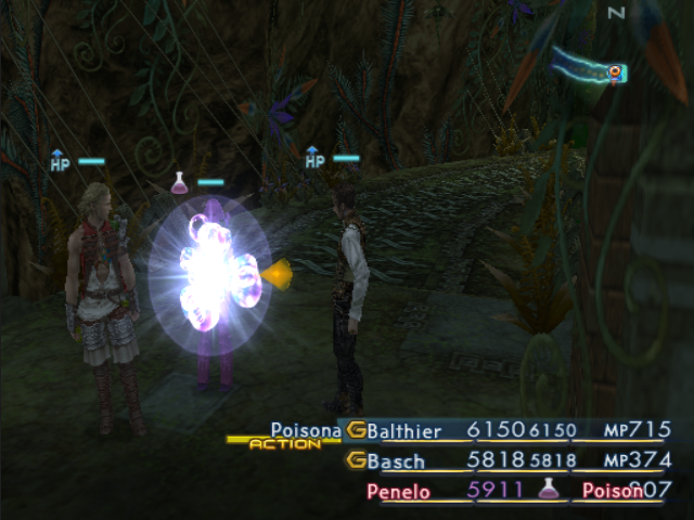 Poisona is a good status heal spell the player can easily set up via the gambit system (Ally:Any→Poisona works well). However, for more utility, the player can set up Ally:Any→Esuna gambit instead, which will respond to various ailments, not just Poison. The player can also rather set up a gambit for Antidotes, which take no charge time to use, and are fairly cheap and plentiful. The player can also protect against Poison with Tourmaline Ring or Ribbon.