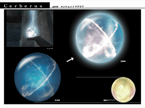 The Protomateria (エンシェントマテリア, Enshentomateria?, lit. Ancient Materia) is a special type of Materia in Dirge of Cerberus -Final Fantasy VII-. Like the Black Materia and White Materia, the Protomateria is a special one-of-a-kind Materia created by the Lifestream that lets the holder tap into the power of Chaos and Omega, and ultimately holds the balance between the salvation or destruction of the planet of Gaia in grave times.