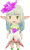 Queen Arbor has long silver hair with a large pink flower on the right side and green eyes. She wears a long white dress with pink trim, a pink flower in the center and green shoes.