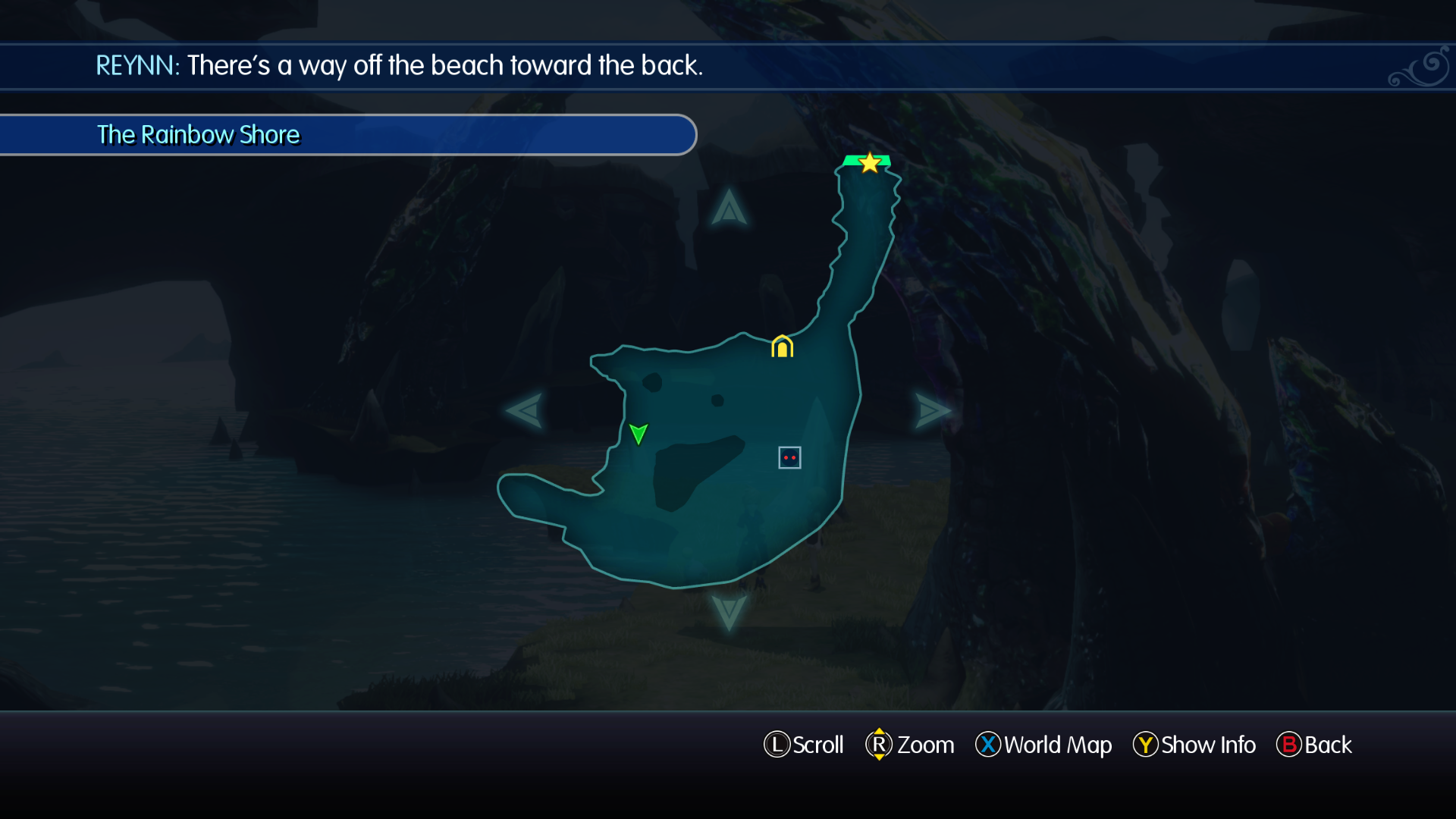 The Rainbow Shore is a location in Grymoire in World of Final Fantasy, and is first visited in Chapter 10, "Too Warm a Welcome". It consists of only one area and connects with The Dragon Scars in the east.