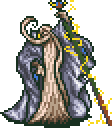 As a lightning-elemental enemy, Ramuh uses Electric Shock, which damages a target, and Lightning, which is more damaging and attacks all targets. He also uses Thundara, a Black Magic spell. Other magic spells include Osmose, which drains a target's MP, the status Mini in response to the player inflicting him with it, and the Blue Magic spell Flash that blinds all party members.