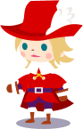 Red Mages don their signature red hats decorated by a feather. Female Red Mages tie their hair into a braided ponytail. They wear a red smock fashioned with a cape, accompanied by a purple belt and purple pants. Male smocks are cut at the middle and held by a string. Female smocks are longer and are held by a ribbon on their chest.