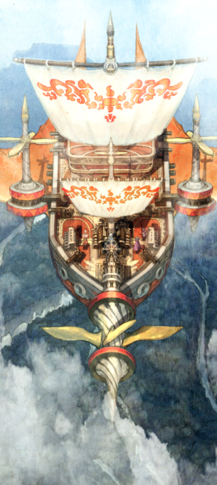 The airship armadas of one far-off land display a blood-red wyvern wing as their heraldic crest. In this land, colors are used to distinguish class, with red being most auspicious and thus highest in rank, used both for the royal family and, it being a military state, for their elite fleet. This Redwing Armada is said to be the strongest in the world, and serves as an excellent deterrent to invasion.