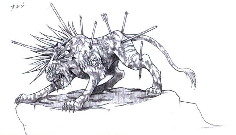 Conceptual art of an elderly Red XIII and two cubs by Tetsuya Nomura.