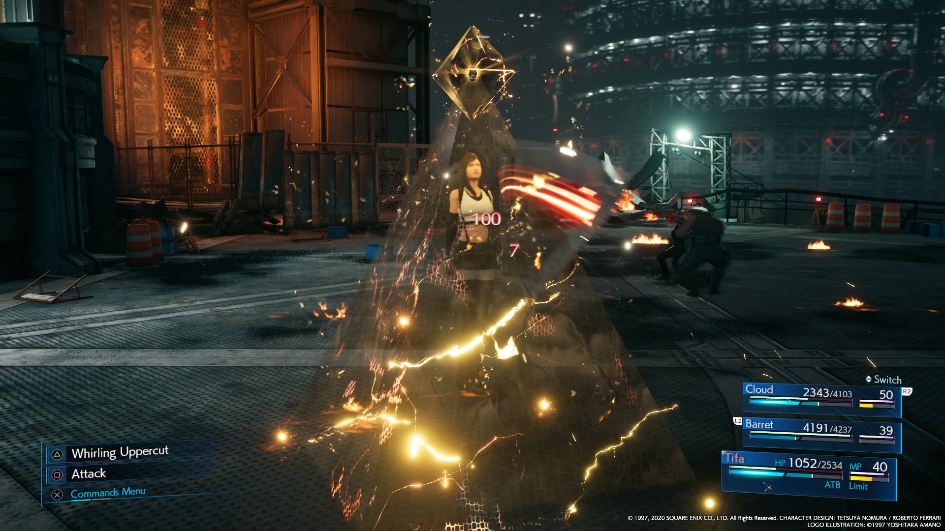 Wind Materia while repeatedly using offensive abilities with Cloud and Tifa, which will make Barret follow them up with Aero, instantly pressuring Reno while knocking him up in the air.