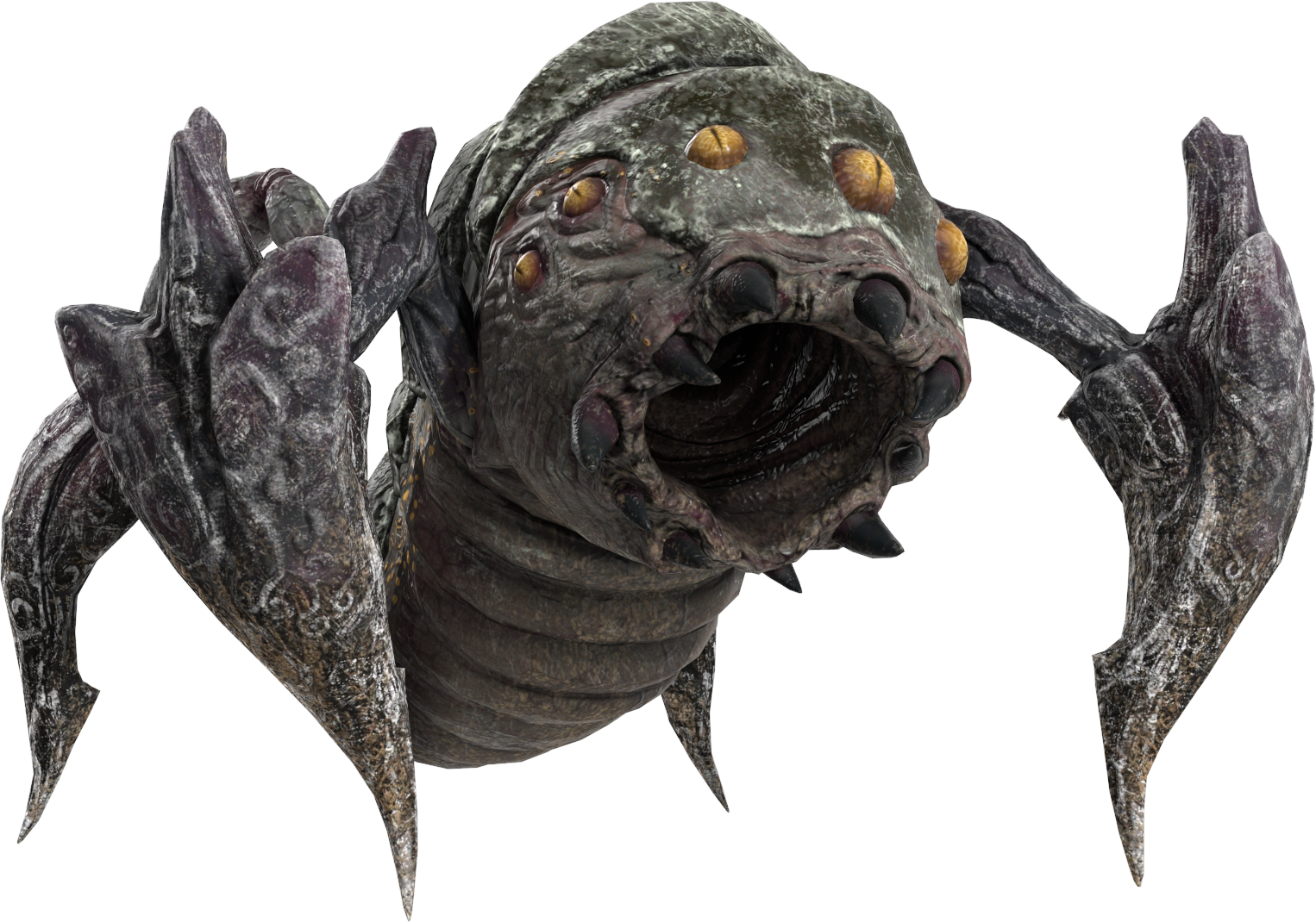 The Ringmaw is a unique, larger and stronger variant of the Gorger. It is notable for their empowerement state which triggers a few seconds after battle starts, noted by an aura emanating from its body; while under these effects, all their damage is increased, and its attacks interrupt characters easier, while becoming more resistant to flinching itself. The Ringmaw can also use Burrow, where it dives underground and regenerate HP, becoming unreachable for few moments.