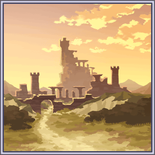 Ronka Ruins is the ruins of a flying city built by the ancient civilization. Much like the Catapult, another Ronkan construct, it primarily comprises moving gears around stone walls with pipes across them, and uses stone switches built in the walls to activate its doors. Due to its age, several growths protrude from the walls. The ruins have stone pillars resembling the rins of Gohn, as seen in the battle background.