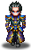 Rowen has black hair and blue eyes and black and blue armor.