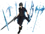 Noctis is an obtainable character during the Final Fantasy XV collaboration event, wielding seven royal arms in Armiger.