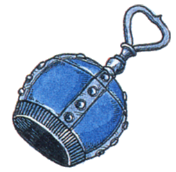 A bell from the Farplane. Engraved with ancient writings, it appears to be a normal bell, but when equipped offers a decent boost to ATK. It is written in Farplane documents that they are held by monsters that appear in the Dimensional Vortex. However, whether the "Dimensional Vortex" they speak of is the same as the one we know of is unknown.