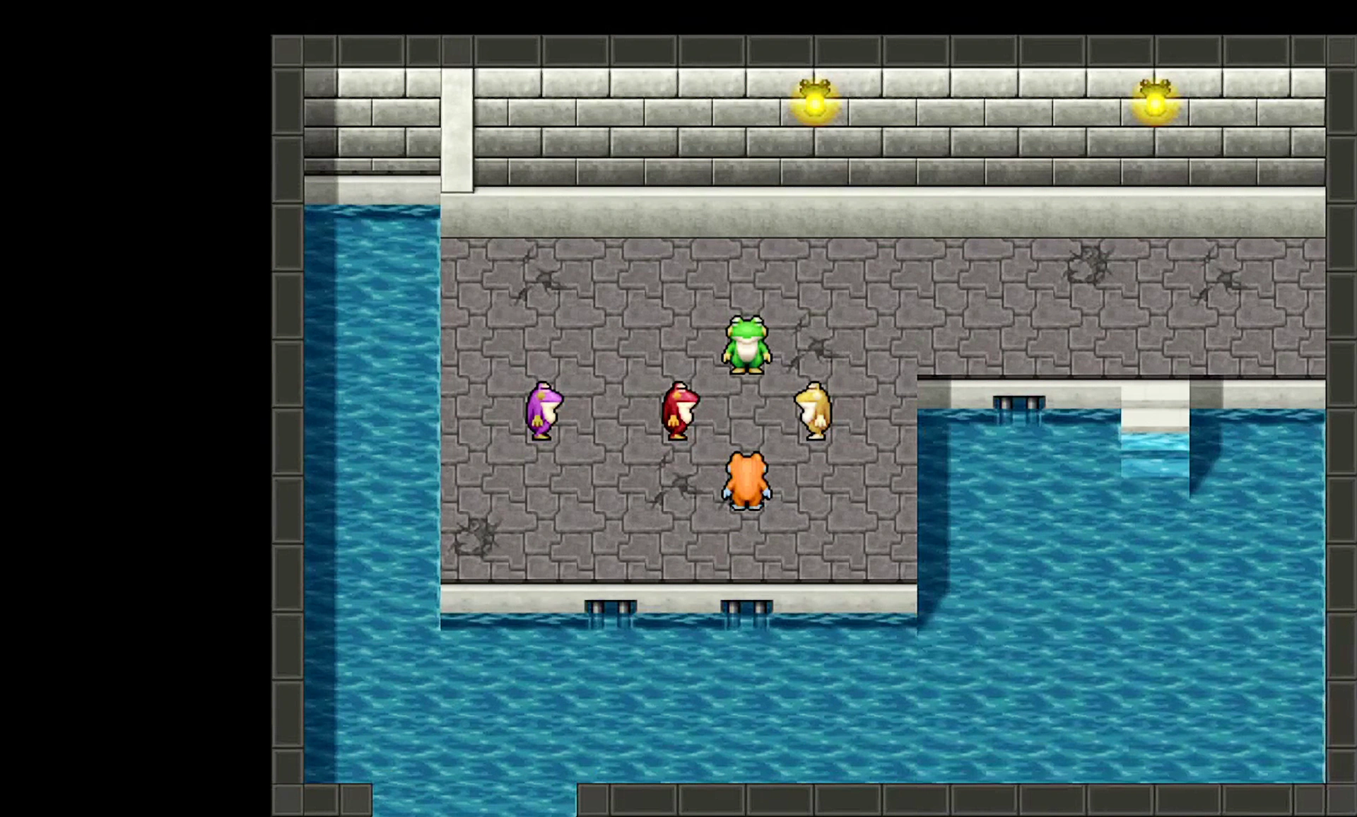 The Warriors of Light go down to Rusalka Sewers to find a frog that Sol though to sing like human. The frog then turns out to be Eduardo, a bard. He loves a mermaid and wanted to go to the Underwater Temple. A witch offered him help, but he was turned into a frog. The Warriors try to undo the spell but it doesn't work. Then they decided to find the Bottle of Bubbly Water, an item that can help one to breathe underwater.