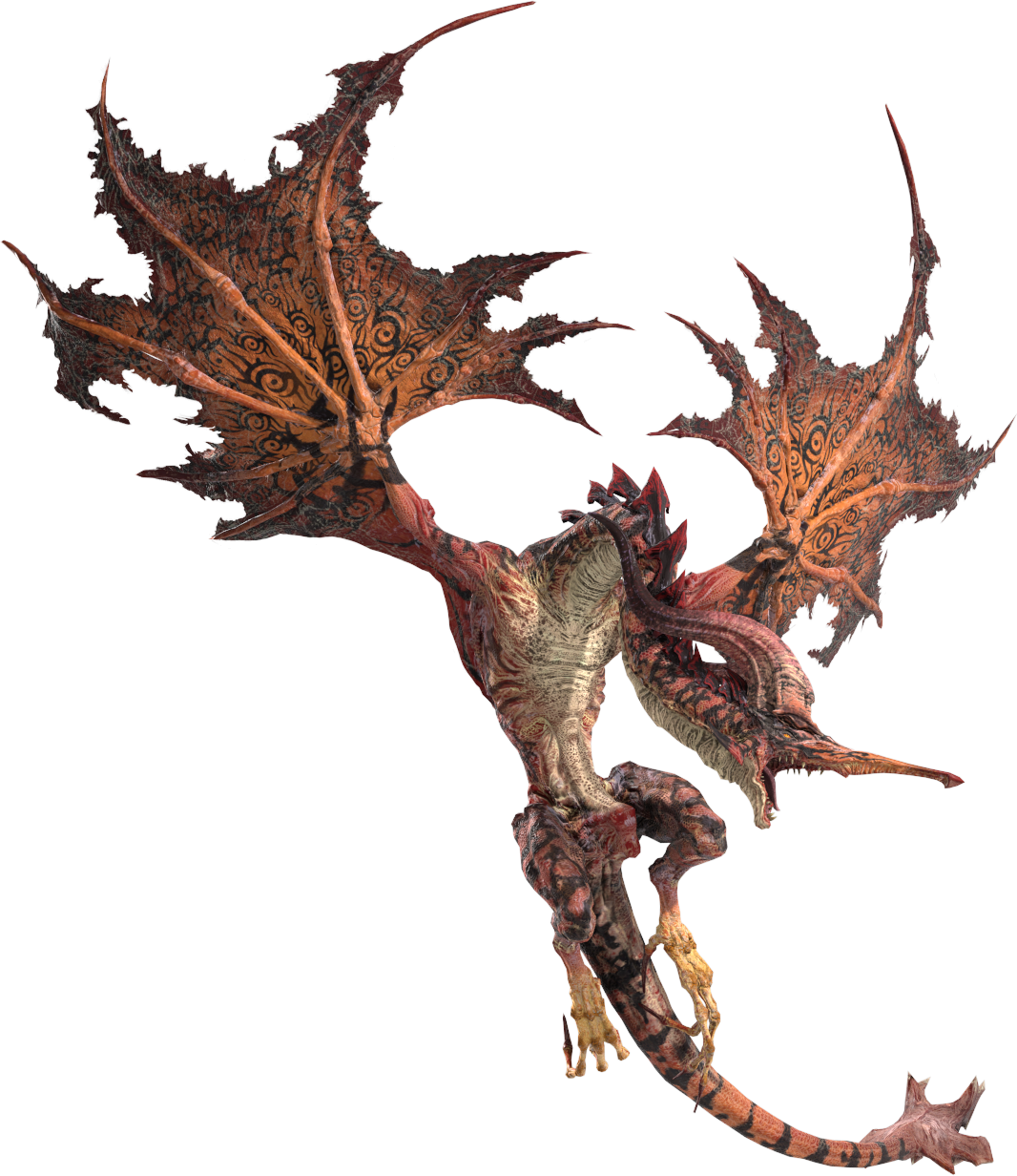 Rust drake is a unique, larger and stronger variant of the drake family of monsters. It is enveloped in a dark aura that makes it impervious to status-inflicting spells and offensive magic for a vast majority of the battle. It is a dangerous creature that employs various projectile attacks, including gravity-based. Like the other drakes, the rust drake will usually fly high and maintain a distance from the player.
