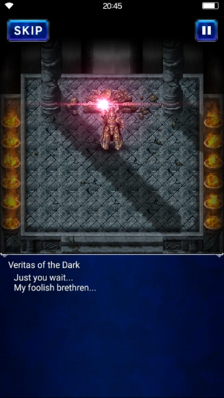 After a long search and the attack on Grandshelt Castle, Veritas of the Dark finds the sacred vessel at the ruins. He breaks the statue where it is hidden and takes the sacred vessel. Rain, Fina and Lasswell, who followed his trail since Grandport, confront him but he easily defeats them and leaves with the relic.