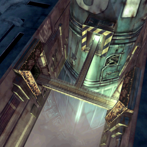 The walkway outside the No. 1 Reactor is used to access the Sector 1 Reactor, and to escape. It comprises a metal walkway connecting Sector 1 and Sector 8, and a path in the middle leading directly to the Sector 1 Reactor. The walkway is suspended above a vast abyss over the lower area of the city.
