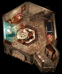 Later on, during Sector 7's destruction, Aerith returned to her house with Marlene Wallace, keeping her safe with Elmyra while Aerith was taken by Tseng to the Shinra Building. In "Aeris's Secret", Cloud, along with Barret Wallace and Tifa Lockhart, used Aerith's house as a temporary base to plan their next move, and Elmyra recited the story of Aerith's childhood.[12] Barret's daughter was kept in the house for a time, until she was later moved by Reeve Tuesti.[22]