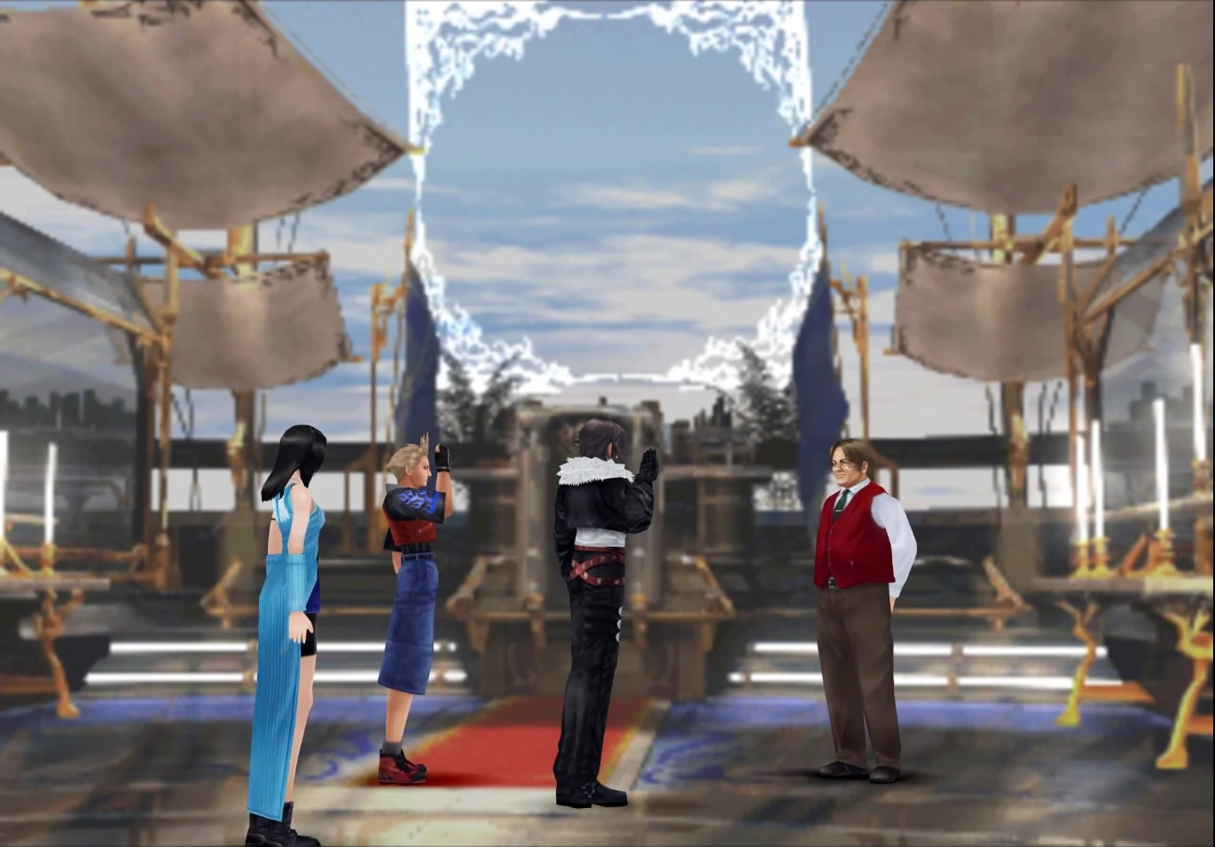 Back in Balamb Garden the SeeDs celebrate their victory over Ultimecia with Edea and Cid also attending.