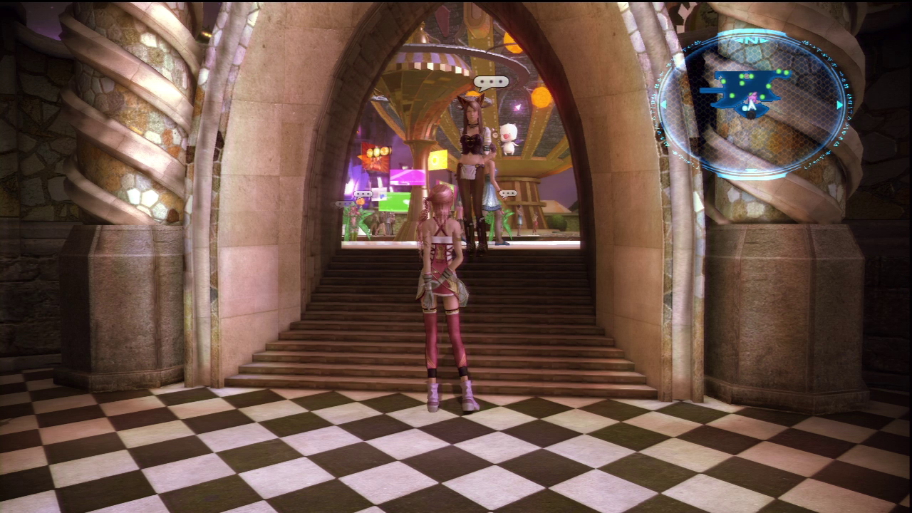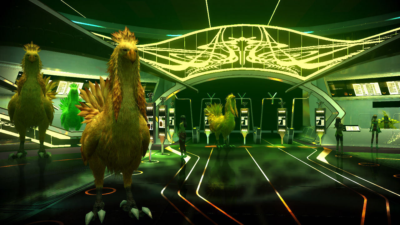 The player can play chocobo racing here. The layout of the hall is based on a discarded area from within Edenhall in Final Fantasy XIII.