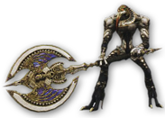 It has three dangerous attacks: an overhead smash that is slow but will hurt; Spellsword, which unless evaded or perfect guarded will do 5000+ damage; and Wargod's Boon, which bestows Bravery, Haste, Protect, and Shell on it.