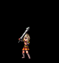 Seven's basic attack is lashing her foes repeatedly while going into a handstand windmill kick motion, and ending it by thrusting the tip of her whipblade forward, launching it right through the target. Her attack has five hits and deals damage approximately after 1 second with 0.5 second intervals between the following strikes (and approximately 1 second on the last hit). This attack sequence is similar to her basic attack in Final Fantasy Type-0.