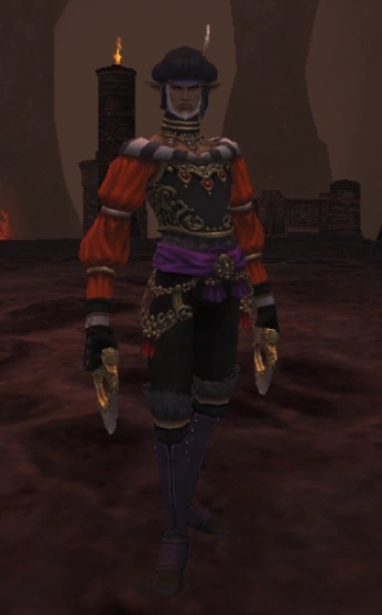 Shamarhaan is an elder elvaan with white hair and beard. He is dressed with a black hat and the puppetmaster attire.