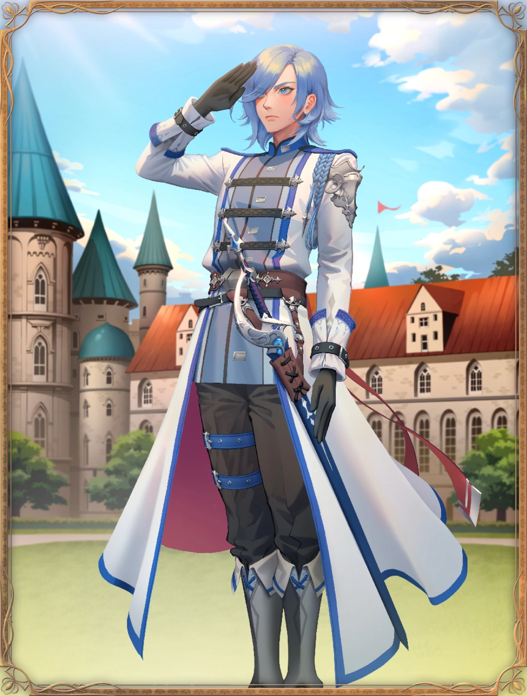 3★ - No. 1428:A new knight of Grandshelt, whose father hails from Olderion. He is assigned to Charlotte's division and, similarly to Charlotte, is a traditional knight who is diligent with his sword. Always at odds with Friese, their incessant rivalry causes him to lose his normally collected composure and resort to childish tones.