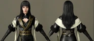 Gentiana was designed by Roberto Ferrari, a sub-character designer for Final Fantasy XV.[6] Compared to Ferrari's original concept, the developers changed Gentiana's clothes for script reasons, although the new dress kept much from the two versions Ferrari had drawn (a formal outfit and a party dress). The face remained unchanged. She originally had red-framed glasses, a white armor on the arm, and a heavy sword at her side. Gentiana's original role for Final Fantasy Versus XIII was that of Stella's messenger and a contact point between the countries of Tenebrae and Niflheim.[7]