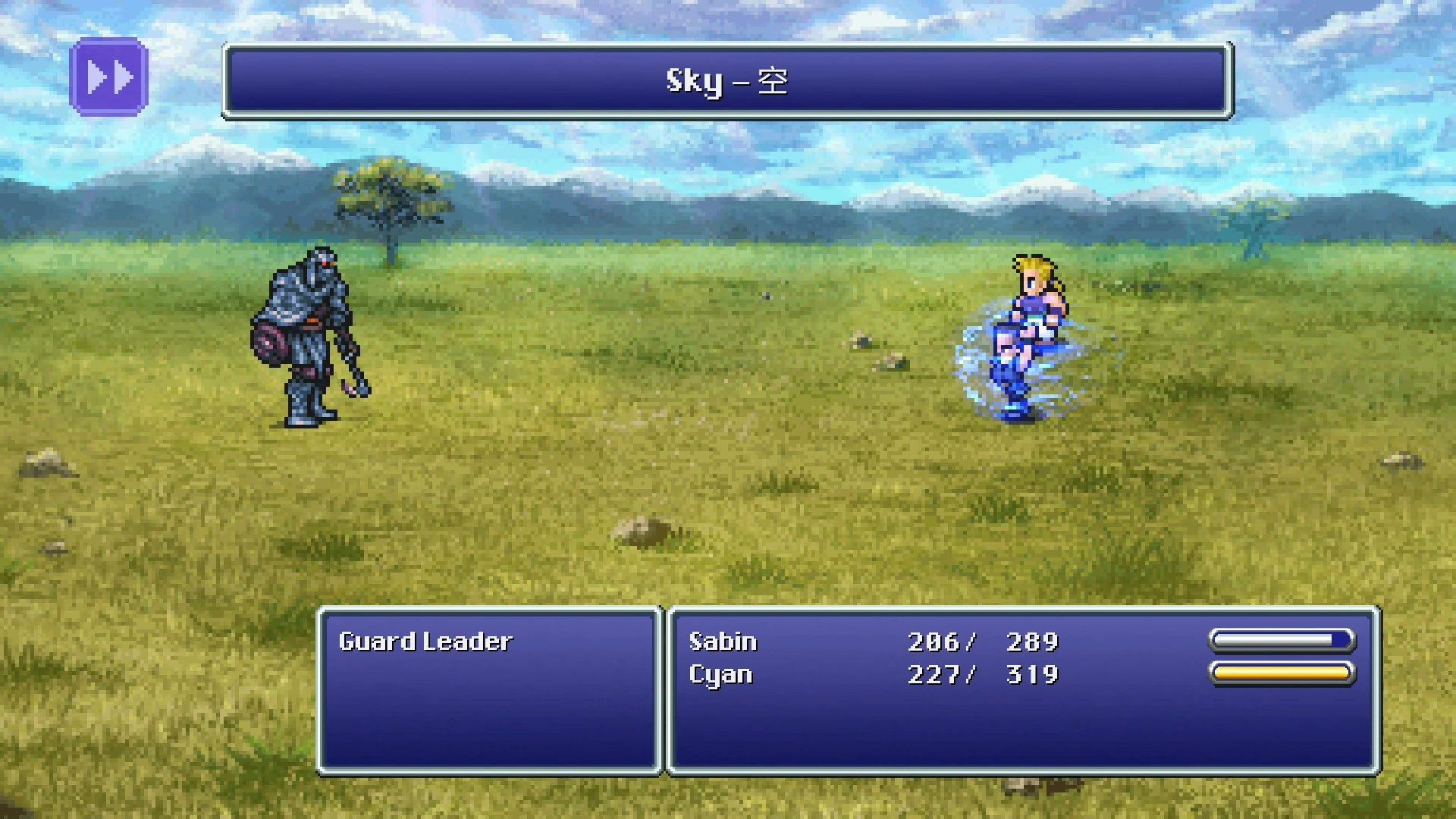 Sky mostly remains useful in specific circumstances where Cyan will take a lot of hits, in which it is his most turn-efficient means of dealing damage with Bushido. However, because most of Cyan's damage is physical, players should focus on boosting his Strength stat by leveling him up with magicite equipped to boost his Strength stat instead; as a consequence, Sky will mostly fall off in damage.