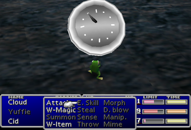 Slow can be used by characters with the Time Materia at level 2. It applies the Slow status effect, which halves the ATB speed of the target. The spell can help the player outpace opponents. Crucially, Slow is guaranteed to work on enemies provided they do not have immunity, and many bosses are not actually immune to Slow. These things make it arguably the most useful negative status effect.