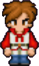 Sol has shaggy light brown hair and clear, pale eyes. He is depicted with brown eyes in his sprite. He wears a white vest over a baggy brown shirt, held with a black belt round his waist, white arm wraps, white trousers and white sandals. The color dominant in his various job attire is red.