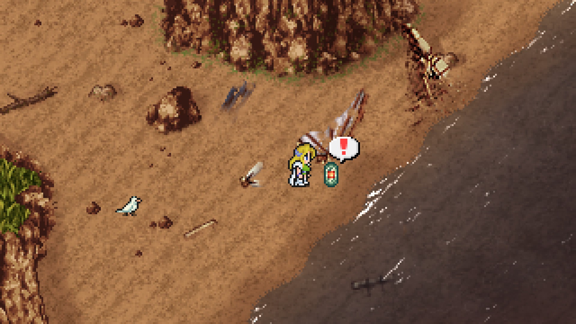 After the cataclysm, several people washed ashore on the island, including Celes and Cid. Over time, the survivors lost themselves to despair and leapt off the northern cliffs into the sea. Eventually, only Cid remained, caring for a comatose Celes and spending his free time constructing a crude raft to one day escape the island.