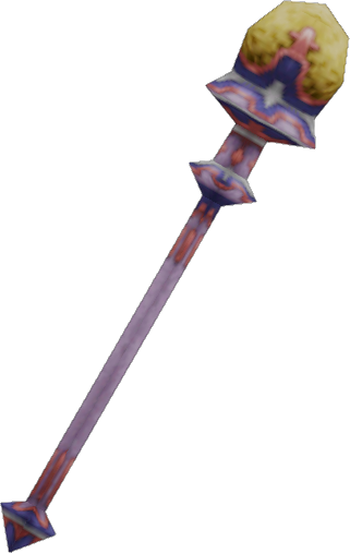 A rod imbued with the power of the stars. There is a mysterious mass sealed at the top of the rod, which amplifies the magic power of the user. It is said to be imbued with the power of skyfall, which dramatically boosts the destructive power of meteor magic. Its current whereabouts have long since been unknown, as it was stolen and taken to the Farplane by a monster with control over storms.
