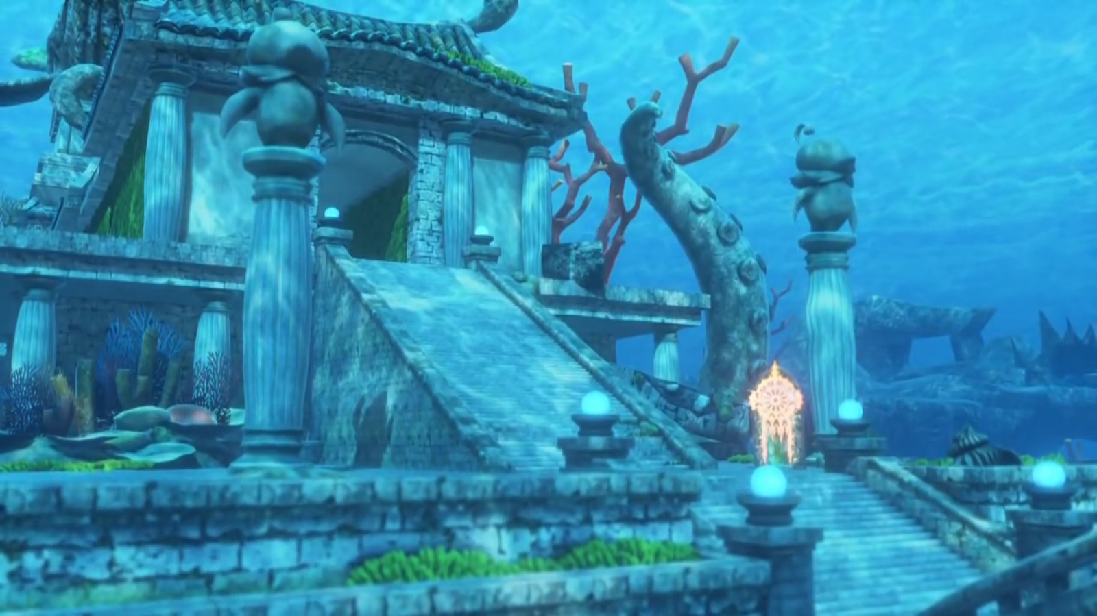 The Sunken Temple shares the same Japanese name as the Sunken Shrine in Final Fantasy. Its background music is also a slowed-down version of the one played in the Sunken Shrine.