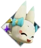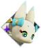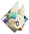 Tama is a small, fox-like Mirage with white fur and yellow and turquoise eyes with a light red dot in the corner of thick black lashes. She has a turquoise bib, a small light blue nose, small pink cheeks, and light blue tips on her large ears, small arms and feet, and tail. She wears a turquoise bow on both sides of her head beneath her ears and her large tail is adorned with a gold crown and eight four-point stars, each one a different color (red, orange, green, turquoise, light blue, blue, purple, pink).